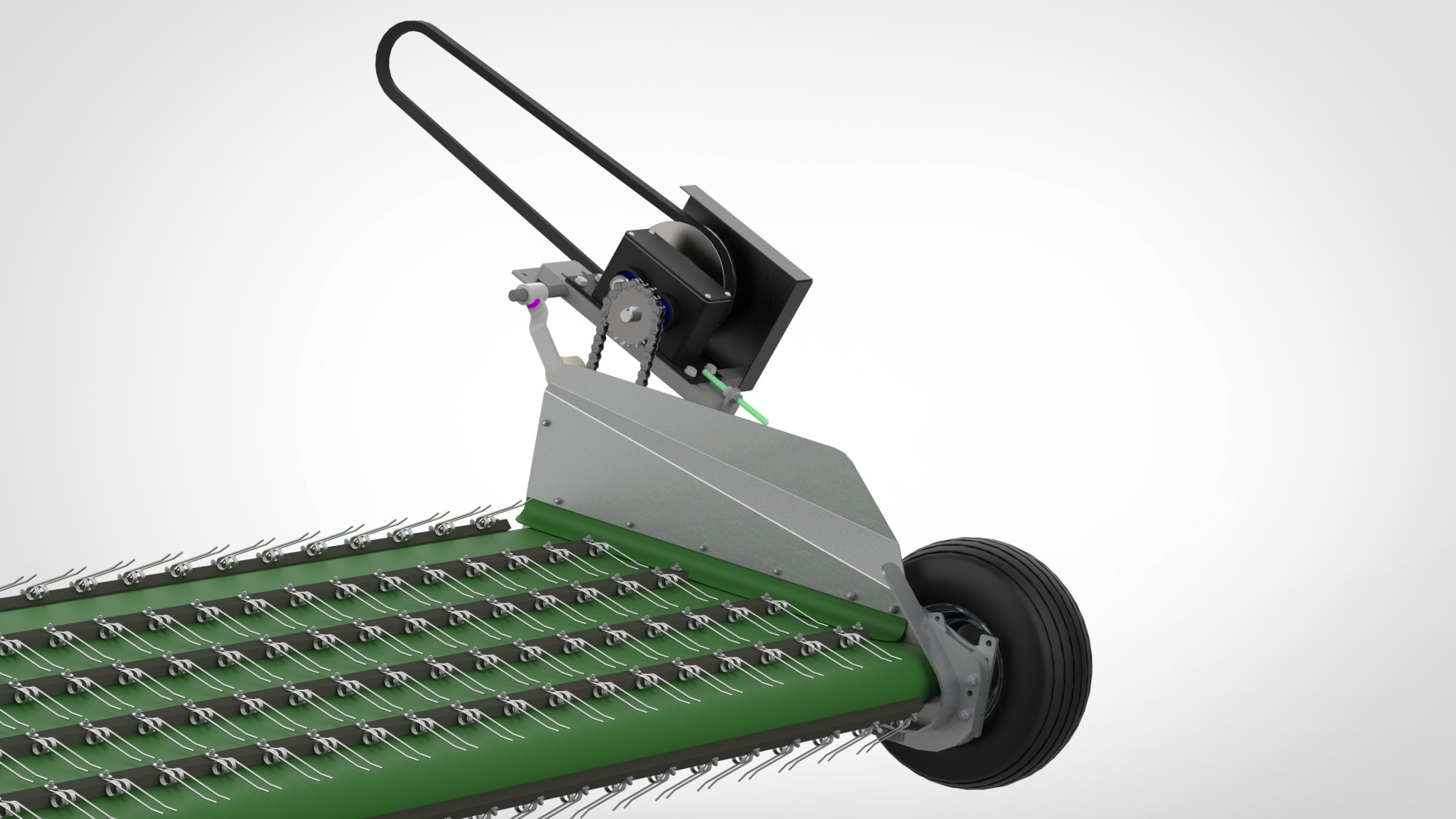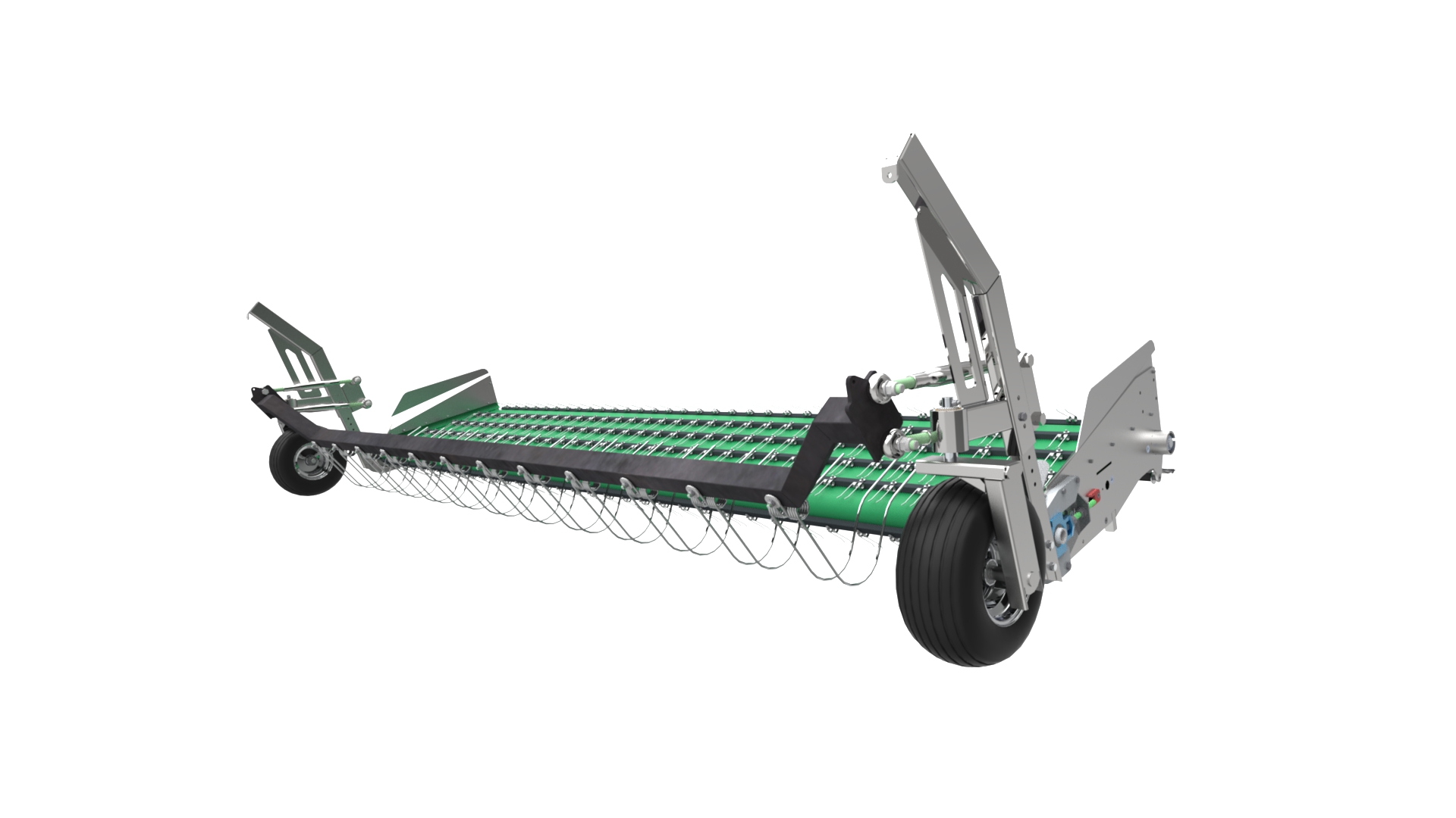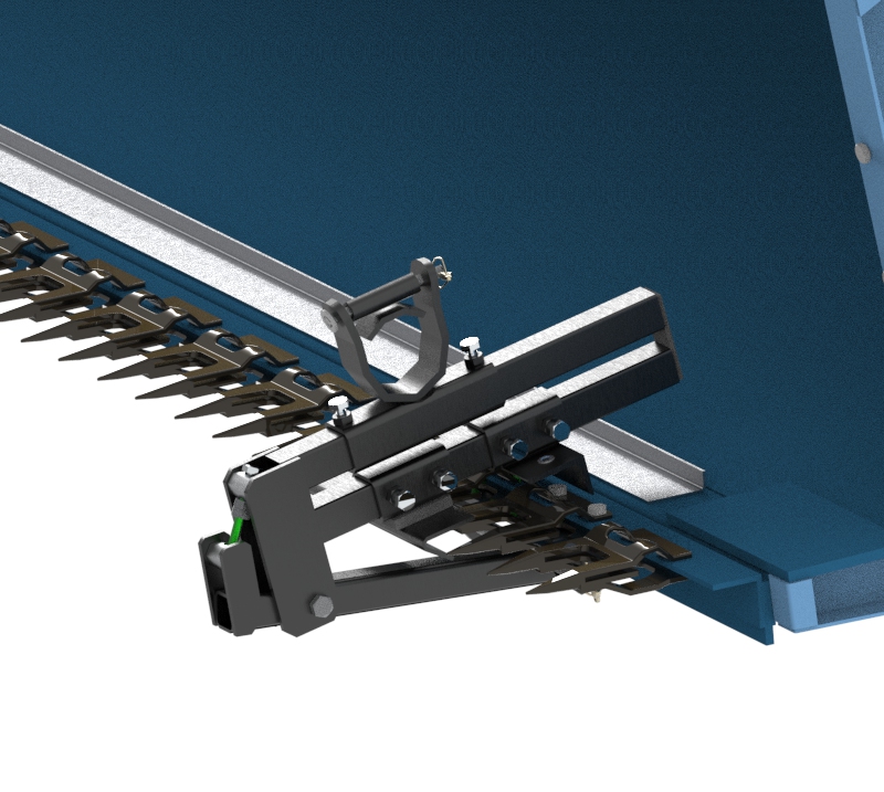 De DZ-Bandopraper is bedoeld als aanbouw-werktuig voor het oogsten van grassen of andere gras achtige gewassen. De definitie “Bandopraper” zegt in feite al iets over de werking van het product. Het is een transportband die het gemaaide gewas opraapt. De transportband is uitgerust met hoogwaardige synthetische kunststof latten met opraapveren er op bevestigd die zorgen voor een optimale gewasopname. Het gesloten doek is rendement verhogend, doordat verliezen in het opnamesysteem worden geminimaliseerd.
